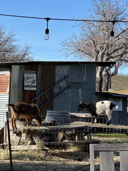 After the tasting, Aram led us to the barrel room, accompanied by Greg’s dog and Aram’s dog, with a quick stop to greet the goats. Inside, he explained the markings on each barrel—varietals, vineyard sources, and the hyper‑local hillside plots where the grapes were grown. Paso is a tight‑knit winemaking community, and relationships matter when it comes to securing great fruit.